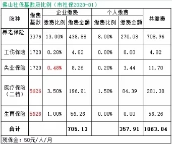 此次佛山职工基本医疗保险和生育保险缴费基数的调整,按照佛山最低基数缴纳社保,总费用比调整前多了27.6元,现将调整前与调整后的佛山社保最低基数及比例费用明细罗列对比,请供参考。调整后的其他佛山基数费用可通过公众号考拉小业社保计算器计算查看。