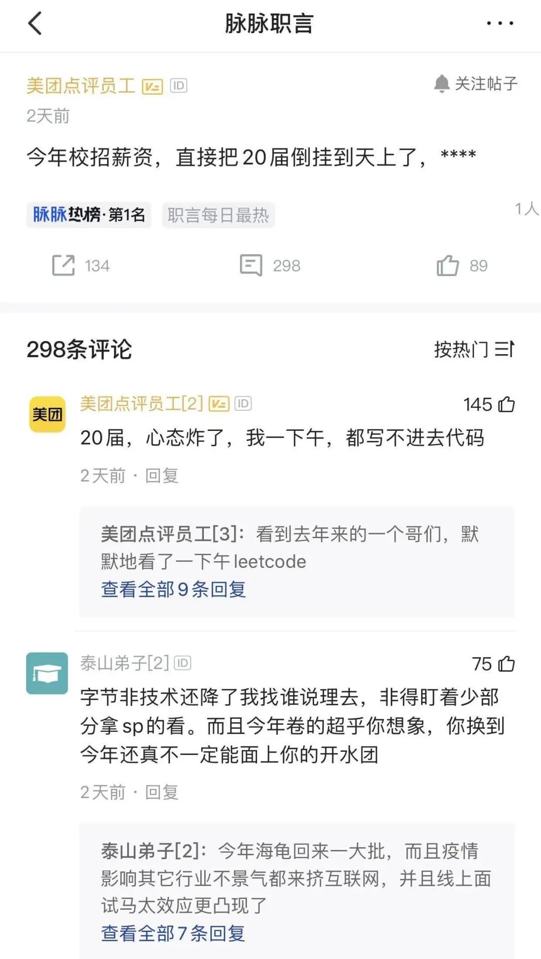 美团开奖后,后续开奖的BAT、拼多多、快手的HR们心里mmp: “美团你咋不按套路出牌?一上来直接来个王炸,谁要的起!”