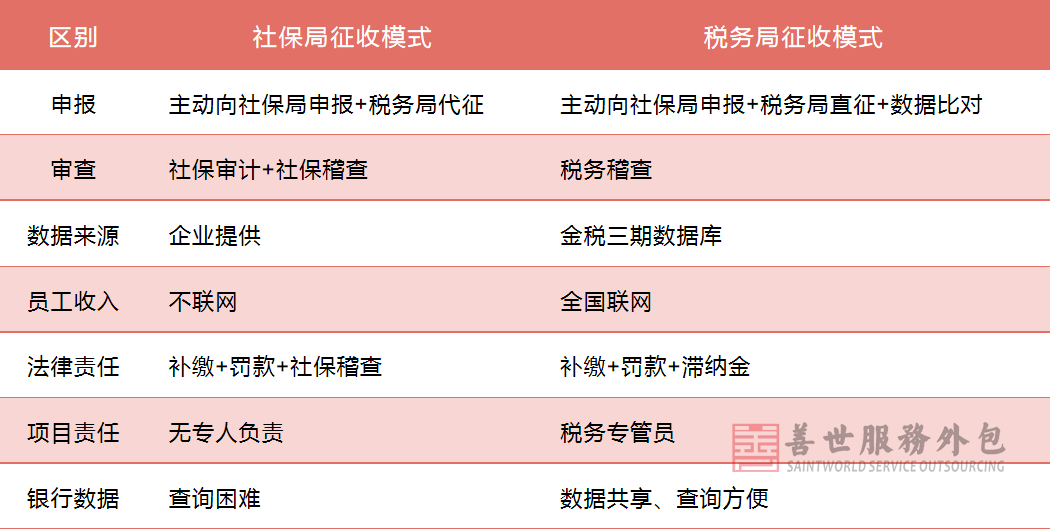 其实,将各项社会保险费转交税务局征收,是党的十九届三中全会做出的重大决策,自2019年1月1日起,河北省、浙江省、福建省、黑龙江省等就已经由税局统一征收社会保险费了,但各地推进进度有差异,近日,一大波省市“社保入税”。代征变直征,主要区别如下图所示: