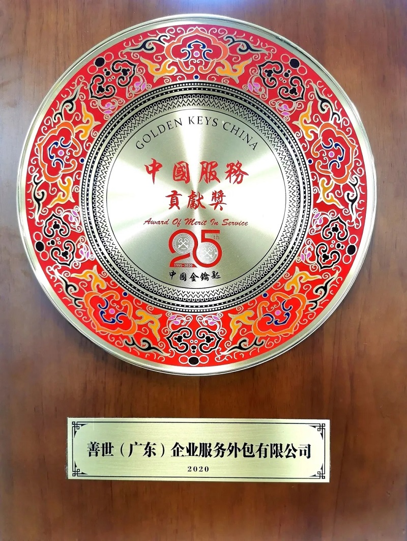 中国金钥匙年度颁奖典礼,被誉为“中国服务的光荣与梦想”。此次颁奖典礼旨在表彰先进和树立标杆,从而影响和带动更多的中国金钥匙和服务企业为中国服务贡献自己的力量!其中,善世服务外包凭借众多出彩的人力资源服务经验、案例荣获“中国服务贡献奖”。